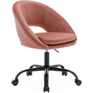 sweeek Chaise de bureau ronde à roulettes en velours vieux rose