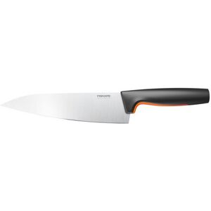 Pour les cuisiniers qui apprécient les ustensiles de cuisine intelligemment conçus et faciles a entretenir, le grand couteau de chef Fiskars® Functional Form ™ est un indispensable du quotidien. Sa longue lame en acier inoxydable japonais et durable, offre d'excellentes performances et est idéale pour couper la viande, hacher les légumes, couper les herbes et plus encore. Sa poignée ergonomique en SoftGrip ™ sous les doigts ainsi qu' un large garde, permet une prise en main sure et confortable. Comme tous les couteaux Functional Form ™, ce couteau va au lave-vaisselle pour un nettoyage simple et facile au quotidien et possede un profil fin pour un rangement facile. Conçu en Finlande. • Le grand Couteau de chef Fiskars® Functional Form ™ a été conçu pour un confort d'utilisation optimale et un entretien facile • Idéal pour couper la viande, hacher les légumes, couper les herbes et plus encore • Lame japonaise en acier inoxydable longue et durable • Poignée ergonomique en SoftGrip ™ sous les doigts • Le large protege-doigts offre une prise en main sure et confortable Va au lave-vaisselle • Performance de coupe (test CATRA) • Conçu en Finlande Spécifications: • Longueur de la lame: 20 cm • Longueur totale: 32 cm • Poids: 117 g • Composition: Acier inoxydable japonais HRC 52 / Plastique • Couleur: Argent/Noir/Orange Photo d'illustration>