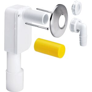 Viega piège à odeurs 452452 pour installation murale Tuyau d'évacuation d'un lave-linge ou d'un lave-vaisselle Vis de fixation Capuchon de protection pour fils Raccord à vis pour tuyau 90° Capuchon Rosace en acier inoxydable qualité contrôlée selon DIN 19541