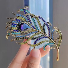 NONE Strass plume broche cristal broche jean Blazer robe décor plume Corsage carnaval scène spectacle fête épaule épaulette
