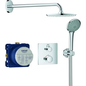 Grohe Grohtherm système de douche à encastrer 34730000 avec Rainshower Cosmopolitan 310 composé de : Thermostat Grohtherm avec inverseur 2 voies intégré pour douche avec plusieurs pommes de douche (24 079) Boîte intelligente Rapido (35 600) Douche de tête Rainshower Cosmopolitan 310 (27 477) Bras de douche Rainshower 42 2 cm (26 145) Douchette à main Sena (28 034) Support de douche mural Rainshower (27 075) Coude de raccordement mural Rainshower (27 076) Flexible de douche Silverflex 125 cm (28 362)