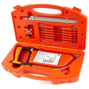 Cet ensemble complet permet de scier quasiment tous les matériaux. Grâce à ces neuf lames de scie interchangeables, vous pourrez couper avec précision le bois, le métal, la céramique, le plastique, le caoutchouc et bien plus encore. La poignée en polyester apporte de la précision et de la puissance au sciage. Vous pourrez garder les pièces bien rangées dans une mallette pratique et esthétique.