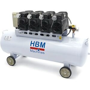Ce compresseur silencieux et sans huile est équipé de 4 moteurs avec un total de 8 (grands) cylindres, qui génèrent ensemble un niveau sonore de seulement 73 dB ! Les huit cylindres de ce compresseur ont une course relativement grande pour un compresseur à faible bruit, ce qui lui permet d'atteindre sa pression maximale plus rapidement que de nombreux autres compresseurs à faible bruit. (La pression maximale est généralement environ 2 bars supérieure à la pression de travail nominale, et la plupart des autres compresseurs à faible bruit mettent relativement longtemps à atteindre cette pression maximale). Le réservoir de 200 litres assure un grand tampon d'air comprimé, évitant ainsi que le compresseur ne démarre trop fréquemment. Cela entraîne un cycle de service court pour la machine. Le contrôleur de moteur démarre les quatre moteurs un par un pour éviter toute surcharge du réseau électrique. De plus, un moteur surchargé est automatiquement arrêté par le contrôleur jusqu'à ce que quelqu'un appuie sur le bouton de réinitialisation. Avec sa course plus grande, ce compresseur à faible bruit occupe une place spéciale dans notre gamme. Il est également idéal pour les travaux de nettoyage. Le compresseur est livré de série avec deux manomètres, une soupape de sécurité contre la surpression, un régulateur de pression, un séparateur d'huile, une vanne de vidange sous le réservoir et un raccord rapide. Comme nos compresseurs LOW NOISE sont de qualité TOP, ils sont livrés avec une garantie de 5 ans !