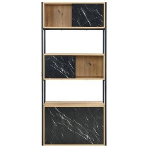 YELANIA est une bibliothèque qui mélange les lignes du style industriel avec une touche contemporaine. Avec ses quatre portes, dont deux coulissantes, elle combine praticité et espaces de rangement généreux. Le contraste élégant des coloris noir et naturel vient sublimer son allure, faisant d’elle un véritable objet décoratif tout en optimisant votre espace.Caractéristiques Couleur (nuance) : Naturel clair, Noir Matière : Mdf Epaisseur métal : 0.7 mm Matière (Piètement) : Acier Finition : Mélaminé, Effet marbre 4 portes Porte battante, Porte coulissante Mécanisme ouverture (porte) : Push to open Type de rangement : 2 niches Type de pose : A poser au sol Charge maximale supportée : 20 kg À monter soi-mêmeDimensions Longueur : 80 cm Hauteur : 180 cm Profondeur : 34 cmLivraisonColisColis n°1 : Longueur 100 cm, Largeur 47 cm, Hauteur 35 cm, Poids 47 kg,