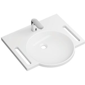 Hewi set de lavabo en fonte minérale 950.19.006 avec étagère et vasque ronde sans débordement avec une surface non poreuse option de maintien intégrée utilisable comme porte-serviettes accessible selon DIN 18040 et ÖNORM B 1600/1601 élastique selon DIN EN 14688 pour la fixation des boulons de suspension