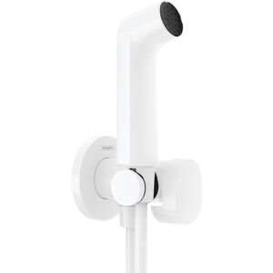 hansgrohe douchette à main 29230700 composé de : douchette à main Robinet d'arrêt avec support de douche intégré tuyau de douche Taille de la pomme de douche : 28 mm fonction support de douche intégrée débit maximum à 3 bar : 5 l/min Pression d'écoulement minimale : 1 bar Pression de service 1 bar/max 10 bar Pivotant côté douche pour éviter une torsion gênante du flexible de douche Flexible de douche avec écrou conique des deux côtés avec clapet anti-retour Supports muraux en métal Montage mural : montage à vis joint de tamis jetable pas intrinsèquement sûr contre le reflux ne convient pas pour une utilisation dans les pays avec la norme EN1717 applicable Taxonomie UE : maximum 6 l/min contribution significative (SC) possible