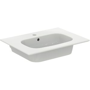 Ideal Standard i.life A kit lavabo pour meuble K8742DU en argile réfractaire fine avec trop-plein et trou pour robinet Meuble sous lavabo avec kit de fixation avec 2 tiroirs à fermeture amortie et poignée en noir mat Corps et façade en dérivé de bois mélaminé Découpe de siphon en métal gris anthracite Extraits en gris-anthracite