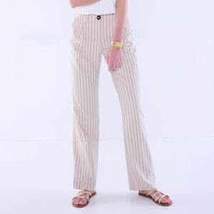 Un tombé impeccable, une coupe large actuelle et beaucoup d'allure. : ce pantalon a tout bon ! Doté d'une taille élastiquée au dos, il offre en plus un confort absolu et élance la silhouette grâce à ses rayures verticales. Casual ou chic, il s'adaptera à toutes les occasions et à toutes vos envies de style.