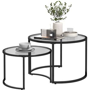 Description:Apportez une touche élégante à votre intérieur avec ce magnifique lot de 2 tables d'appoints gigognes encastrables. En acier au carbone noir et plateau en verre transparent, ces tables gigognes modulables s'intègrent dans tous les environnements. De plus, ce sont des modèles encastrables qui permettent d'optimiser facilement votre espace.caractéristique:● Lot de 2 tables basses moderne et élégante avec le plateau en verre transparent et la structure en acier au carbone noir; ● Une gamme complète de décoration intérieure convient dans le salon, la chambre ou même le bureau; ● Meuble multifonctionnel peut être utilisé comme table de chevet, table basse ou table d'appoint; ● La structure en acier de qualité garantit une position stable au sol; ● Les coussinets sous les pieds protègent le sol; ● Assemblage simple;Spécification:● Couleurs : noir; ● Matériaux : acier au carbone, verre trempé; ● Dim. totales : Ø 70 x 47,5H cm (grande table), Ø 54 x 42,5H cm (petite table); ● Charge max. recommandée : 25 kg (grande table), 15 kg (petite table); ● Réf. : 839-798V00BK;contenu du colis:● 1 x Grande Table Basse; ● 1 x Petite Table Basse; ● 1 x Notice de Montage;