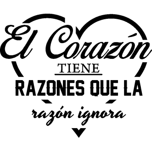 Des stickers muraux citations pour la déco ! Avec les stickers citation et ce Sticker El corazon tiene razones que la razon ignora, vous pourrez enfin décorer l'intérieur de votre cuisine à votre guise avec leur aide ! Apportez plus de tendance dans votre décoration avec ce sticker El corazon tiene