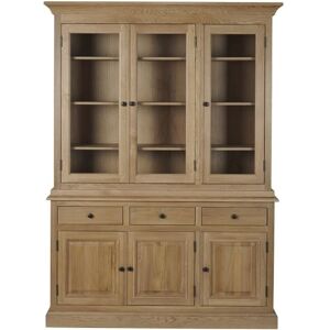 Le bahut en chêne massif 3 portes s'assemble avec son vaisselier pour ne former plus qu'un et vous offrir un grand espace de rangement. Les portes vitrées de l'élément haut vous permettront d'exposer vos plus beaux objets tandis que le bahut bas fermé par des portes pleines vous offrira un rangement caché.Un buffet vaisselier assemblé de façon traditionnelleLeurs lignes harmonieuses et leurs moulures discrètes laissent place à une capacité de rangement généreuse et une hauteur imposante. Les trois portes et trois tiroirs de rangement de l'élément bas reposent sur un élégant socle en chêne massif. Les trois portes vitrées de l'élément haut sont montées sur des charnières discrètes à ouverture totale. La corniche donne du relief et de la prestance à l'ensemble du meuble.Un vaisselier 3 portes élégant et spacieuxCe vaisselier 3 portes Victoria est pensé pour les intérieurs qui exigent à la fois praticité et raffinement. Sa partie haute vitrée met en valeur votre vaisselle et vos objets décoratifs, tandis que sa partie basse fermée par trois portes pleines permet de dissimuler votre linge de maison ou vos accessoires de table. Avec ses proportions généreuses et son design patiné, il devient la pièce maîtresse de la salle à manger.Le buffet et le vaisselier Victoria en chêne patiné sont assemblés dans le pur respect de la tradition.Retrouvez également ce meuble en version 2 portes (Réf : 02011) ou 4 portes (Réf : 02913). Description technique : • Réalisé en chêne massif, côtés panneautés et arrière en placage chêne. Assemblage par queue d'aronde de façon traditionnelle.
