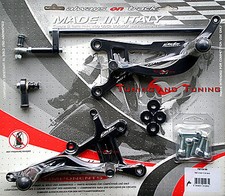 Platine de protection en acier inoxydableRepose-pieds rabattables jusqu'à 90° avec ressort de rappelRepose-pieds revêtus de caoutchouc anti-vibrationsEmbouts de sélecteur de vitesse et pédale de frein caoutchoutéEmbout de sélecteur de vitesse réglableSélecteur de vitesse deux positionsLeviers à roulement à billesInterrupteur de feu stop inclusHomologué TUV