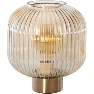 Lampe de table en verre cannelé fumé de style vintage. La combinaison du verre texturé avec la finesse de sa base noire sablée, fera de cette lampe de table votre meilleur complément non seulement pour l'éclairage mais aussi pour la décoration. Avec douille E27 et cordon en tissu nylon noir.
