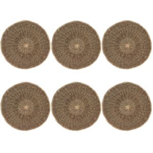 Ce lot de 6 sets de table ajoute un look qui peut être moderne au style rustique. Noël, dîners de famille au bord de la piscine... Ajoutez du style avec ces sets de table tissés. Offrez un style nature et respectueux de l'environnement avec ce set de table Fabriqué en matière végétale Dimensions : 38x38cm Chiffon humide