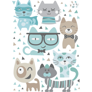 Des stickers animaux pour votre déco ! Avec les stickers muraux animaux multicolore et ce Stickers chats amis heureux, vous vous approprierez enfin votre intérieur ! Dimension du sticker : La planche de H80 x L60 cm, le sticker chat à lunettes mesure H25 x L35 cm – le sticker chat portant une cape