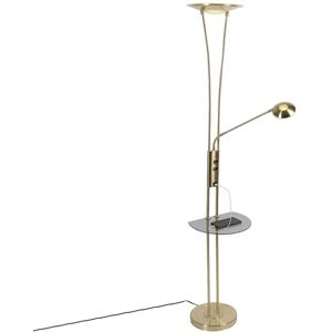 Lampe sur pied fonctionnelle avec liseuse et port USB pour charger tablette/smartphone ! Lampadaire en acier Sevilla, finition or/bronze. Hauteur de 180 cm, base de 28 cm de diamètre. Câble de 180 cm. Lampes utilisables indépendamment. Liseuse réglable, idéale pour lecture ! Éclairage vers le haut (diamètre 30 cm) avec LED intégrée. LED de 3000K, 2000 lumens. Liseuse de 3000K. Points lumineux dimmables indépendamment. Durée de vie de 30 000 heures. Fonctionnel et ambiant.