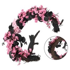 NONE Couronne de chat de lune d'halloween, guirlande de fleurs artificielles, accessoire d'horreur, couronne suspendue pour porte d'entrée, fenêtre, mur, décoration d'halloween