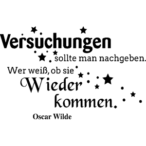Des stickers muraux citations pour la déco ! Avec les stickers citation et ce Sticker Versuchungen - Oscar Wilde, vous pourrez enfin décorer l'intérieur de votre cuisine à votre guise avec leur aide ! Où coller cet autocollant déco ? Ces stickers proverbes d'hommes célèbres seront parfait pour les