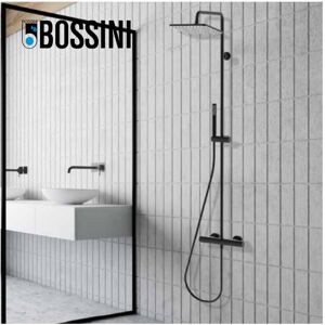 Kit colonne de douche thermostatique blanc Cosmo : Une touche de modernité pour une salle d'eau design. Composant : Colonne de douche. Mitigeur thermostatique. Pomme de tête. Douchette. Flexible. Finition : Noir. Garantie 2 ans. Bossini met au coeur de ses préoccupations la qualité et le design. Gr