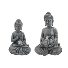 NONE Statue de bouddha avec lampe à énergie solaire, ornement de bouddha en résine de Style chinois, Sculpture décorative de jardin, cadeau bouddhiste