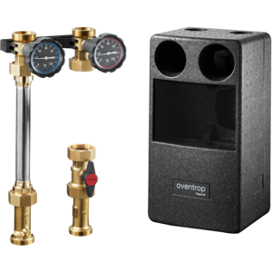 Système de raccordement de chaudière Oventrop Regumat 1355070 avec universel isolation thermique modulaire composé d'un dispositif d'arrêt avec 2 robinets à tournant sphérique et 2 thermomètres (sans dispositif de trop-plein) montage mural tuyau à bride clapet anti-retour entretoise Vanne à boisseau sphérique devant la pompe isolation thermique