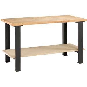 Etabli professionnel avec plateau bois L.2500 mm équipé avec : > Plateau bois lamellé-collé hêtre, poncé 2 faces, épaisseur 40 mm, largeur 750 mm. Charge : 500 kg (ur) > Piétement métallique coloris gris anthracite Ral 7016 > Etagère inférieure en contreplaqué okoumé 22 mm. Charge : 85 kg maxi, avec 2 traverses de renfort en métal Dimensions > Hors tout : Longueur 2500 mm x Profondeur 750 x Hauteur 840 mm. > Poids
