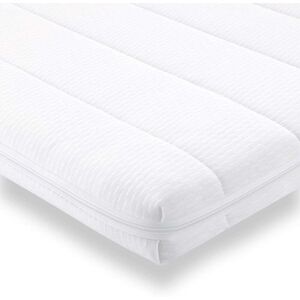 Surmatelas en mousse froide - Pour un meilleur confort de sommeilCe sur-matelas est parfait pour tous ceux qui veulent améliorer la qualité de leur sommeil et oublier les courbatures au réveil. La mousse froide de haute qualité soutient et soulage le corps dans toutes les positions de sommeil et vous assure de passer une nuit réparatrice. Il protègera également votre matelas contre l'usure et permettra de combler les désagréables trous d'un ancien matelas. Tous les matériaux utilisés sont perméables à l'air et hygiéniques.Caractéristiques et propriétés du produit• Surmatelas en mousse froide, hauteur totale d'environ 5 cm• Housse en microfibre (100% polyester) facile à entretenir, amovible et lavable jusqu'à 40 degrés• Des matériaux respirant pour un climat de sommeil agréable• Fabriqué en Allemagne, OEKO-TEX® STANDARD 100 13.0.33723 (Classe de produit I, Annexe 4) HOHENSTEIN HTTI • Convient comme support pour les lits à sommiers et tous les types de matelas, tels que les matelas en mousse et les matelas à ressortsAdaptation optimale du corpsLa condition préalable à un meilleur sommeil est une posture de couchage naturelle. Ce surmatelas assure une position de sommeil optimale et soulage ainsi votre colonne vertébrale. La mousse assure une répartition uniforme du poids du corps et un bon soulagement de la pression.Housse de matelas facile à entretenir• Respirant, régulant l'humidité et la température pour un climat de sommeil agréable• Housse blanche (100% polyester, matelassée avec fermeture de couleur claire)Livraison de votre surmatelasNos surmatelas sont roulés pour l'expédition. De cette manière, les déchets plastiques sont évités. Les dimensions de l'emballage sont les mêmes pour toutes les tailles : 100-110x24x24cm. Veuillez noter que deux surmatelas d'une place peuvent être livrés dans le même colis et que la véritable taille du produit est inscrite sur une étiquette autre que celle du transporteur.