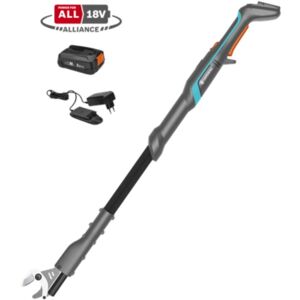 Une coupe sans effort meme dans la cime des arbres, depuis le sol et sans échelle. • Le coupe-branches EasyCut 110/18V permet un travail sans effort meme dans la cime des arbres, depuis le sol et sans échelle. • Coupe-branches avec des lames de haute qualité fabriquées en Allemagne pour du bois frais. • Sa poignée ergonomique et son faible poids permettent une utilisation confortable lors de la coupe de branches en hauteur et en profondeur. • L'indicateur LED situé sur le manche permet une visibilité de l'état de charge de la batterie. • Le coupe-branches sur batterie permet un travail sans effort pour du bois frais jusqu'a 28 mm et une hauteur de coupe de 2,5 m. • Le coupe-branche télescopique EasyCut est livré sans chargeur ni batterie. • Toutes les batteries 18V de l'ALLIANCE POWER FOR ALL sont compatibles avec le coupe-branches. Vous pouvez également acheter le kit pret a l'emploi (Art. No. 14772-20). l'ALLIANCE POWER FOR ALL est l'une des plus grandes alliances de batteries multi-marques. Les batteries peuvent etre utilisées dans de nombreux appareils pour le jardin et la maison. Cela vous permet d'économiser de l'argent tout en restant flexible ! Spécifications techniques: • Tension de la batterie: 18 V • Diametre maxi de coupe: 28 mm • Longueur taille produit: 1115 mm Photo d'illustration>