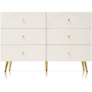 Offrez à votre intérieur une pièce maîtresse mêlant design contemporain et élégance raffinée avec ce buffet bas blanc à motifs géométriques en relief. Conçu pour séduire les amateurs de décoration haut de gamme, ce meuble se distingue par ses façades ornées d’un motif en arcs concentriques soigneusement sculpté, qui joue subtilement avec la lumière et ajoute une profondeur visuelle unique.La structure rectangulaire, aux lignes nettes et équilibrées, repose sur des pieds métalliques dorés effilés qui apportent une touche de sophistication tout en assurant stabilité et robustesse. L’association du blanc éclatant et des accents dorés crée un contraste chic et intemporel, capable de s’intégrer dans une variété de styles décoratifs, du moderne minimaliste à l’art déco revisité.Ce buffet est équipé de quatre portes à ouverture discrète, offrant un vaste espace de rangement à l’abri des regards. L’intérieur, pensé pour la fonctionnalité, dispose d’étagères réglables permettant d’adapter l’organisation à vos besoins : vaisselle, verrerie, linge de table, livres ou objets décoratifs y trouvent aisément leur place. Le système d’ouverture sans poignées traditionnelles, remplacées par de fines prises en façade, renforce l’esthétique épurée du meuble.Fabriqué à partir de matériaux de haute qualité, ce buffet garantit durabilité et facilité d’entretien. La finition lisse et résistante du revêtement blanc est conçue pour rester impeccable, tandis que les pieds métalliques assurent un maintien solide et résistent à l’usure quotidienne.Polyvalent, il peut s’installer dans une salle à manger pour accueillir vos arts de la table, dans un salon comme meuble d’appoint élégant, ou dans un hall spacieux pour marquer l’entrée avec style. Sa surface supérieure, large et stable, se prête parfaitement à la mise en valeur de vos plus beaux objets : vase, lampe, cadre ou sculpture contemporaine.