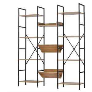 Caractéristiques produit: Bibliothèque avec 11 étagères de rangement. Cadre métallique. Style industriel. 4 Tablettes simples de chaque côté. 1 Tablette avec rebords + 2 tablettes inclinées pour livres, vinyle. Chaque étagère peut supporter jusqu'à 10 kg. Dimensions produit: Longueur 125 cm x Largeur 27 cm x Hauteur 150 cm - Poids net: 17,40 kg. Dimensions colis: Largeur 20,5 cm x Hauteur 33 cm x Profondeur 90 cm - Poids brut: 18,6 kg.