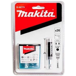 Makita B-48773 Jeu d´embouts plus porte-embout 80 mm, 26 pcs. • Les embouts conçus avec précision assurent une prise en main parfaite • Comprend un porte-embout magnétique à verrouillage Ce produit comprend - PH2 (5×) - PZ2 (5×) - T20 (5×) - T25 (5×) - T30 (5×) - 1 Porte-embout magnétique à verrouillage>