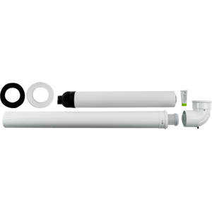 Wolf Luft- / acheminement des gaz d'échappement 2651749 adapté pour mur / Sortie de toit échappement composé de : coude d'inspection 87° pour raccordement à la chaudière à condensation Luft- / longueur du tuyau d'échappement 1000 mm Luft- / tuyau d'échappement avec pare-brise longueur L 2 Rosetten