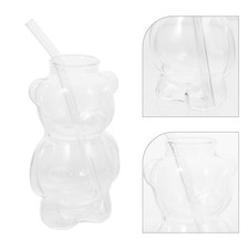 NONE Tasses en verre mignonnes avec paille, résistantes à la chaleur, pour café, lait, eau, avec couvercle en paille, jus, Smoothie, boissons froides, tasse d'eau en paille, 1 pièce