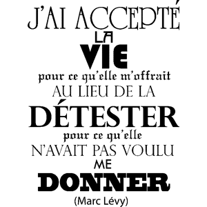 Des stickers muraux citations pour la déco ! Avec les stickers citation et ce sticker J'ai accepté la vie, vous pourrez enfin décorer l'intérieur de votre cuisine à votre guise avec leur aide ! Ce sticker J'ai accepté la vie vous aidera à mener votre vie de la manière la plus sage que possible. Où