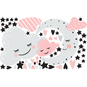 Des stickers enfants pour votre déco ! Avec les stickers muraux enfants et ce Stickers enfant girly lune et nuages amoureux dans les étoiles, vous vous approprierez enfin votre intérieur ! Dimensions des Stickers enfant girly lune et nuages amoureux dans les étoiles : Une planche de 30 x 50 cm, le