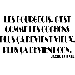 Des stickers muraux citations pour la déco ! Avec les stickers citation et ce sticker Les bourgeois, c'est comme les cochons - Jacques Brel, vous pourrez enfin décorer l'intérieur de votre cuisine à votre guise avec leur aide ! Ce sticker Les bougeois, c'est comme les cochons - Jacques Brel vous ap