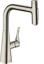hansgrohe Metris mitigeur de cuisine 14820800 Zone de confort 320 Plage de pivotement réglable à 110° ou 150° Jet laminaire et de douche Douche en acier verrouillable Jet réinitialisé automatiquement en fermant la vanne Support de douche magnétique MagFit Tuyau de douche à connexion rapide débit maxi à 3 bar 10 l/min système de mélange en céramique Limite de température réglable avec clapet anti-retour convient aux chauffe-eau instantanés Système anticalcaire Quick Clean P-IX 28074/IOO