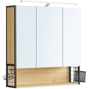 [Je cherche un modèle design] Vous l’avez trouvé ! Vous allez pouvoir refaire une beauté à votre salle de bain ![Je le veux avec lumière] Regardez ! Cette armoire est dotée d’une longue lampe à LED avec un câble et un interrupteur ! Voilà plus de clarté et bien moins de mauvaises surprises quand vous sortez dehors car votre maquillage est identique en plein soleil ![J’aimerais bien avec miroir aussi] En voilà 3 d’un coup avec ce placard ! Vous avez raison, c’est quand même mieux de se raser, se coiffer et se maquiller en pouvant se regarder ! En plus ils sont en verre de qualité. Perfectionnez votre beauté ![J’ai besoin de beaucoup de rangements] Alors ici, on a un compartiment ouvert, un placard avec étagère réglable sur 3 niveaux, puis un pot et même un porte sèche-cheveux ! Avec tout de rassembler au même endroit, vous pourrez pas être mieux servi ![Il me faut du solide] Vous pouvez compter sur ce meuble de salle de bain ! C’est pas juste pour quelques débarbouillages ! Fabriquée en acier solide et en panneaux d’aggloméré durable, cette armoire robuste est là pour vous apprêter matins et soirs pendant des années !Caractéristiques :Couleur : Chêne naturelMatériaux : Panneau d’aggloméré, acier, verreDimensions de l’armoire : 14,5 x 70 x 70 cm (P x L x H)Hauteur de la lampe : 5 cmPoids : 14,8 kgCapacité de charge statique maximale du dessus : 20 kgCapacité de charge statique maximale de l’étagère du milieu : 5 kgCapacité de charge statique maximale du compartiment ouvert : 5 kgLivraison :1 x Armoire mural1 x Pot de rangement1 x Porte sèche-cheveux1 x Kit de montage1 x Mode d’emploiPas de livraison en Corse.Merci de votre compréhension.