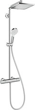 hansgrohe Crometta E Colonne de douche 240 1jet 27281000 composé d'une douche de tête Douchette à main Thermostat de douche tuyau de douche Support de douchette à main barre de douche Douche de tête Crometta E 240 Dimensions du pommeau de douche 240 x 240 mm Type de jet Douche de tête à effet pluie chromé de disque à jet de surface0 Douche de tête à rotule réglable en angle Angle d'inclinaison réglable à 45° du support de douchette à main Type de jet de douchette à main à effet de pluie Pluie intense Support de douchette réglable en hauteur Barre de douche diamètre 22 mm Le tube montant peut être coupé à la longueur souhaitée Longueur du bras de douche douche de tête 350 mm débit max. à 3 bars 7,6 l/min Pression d'écoulement minimale 1,3 bar Pression de service max. 10 bars Thermostat Ecostat 1001 CL Verrouillage de sécurité à 40°C limite d'eau chaude réglable adapté aux chauffe-eau instantanés Installation du point d'accès Taille de raccordement DN 15 Filetage de raccordement G 1/2 Pas 150 +/-12 mm intrinsèquement sûr contre le reflux Montage mural 2 consommateurs ÉcoSmart Système anticalcaire Quick Clean Des performances XXL