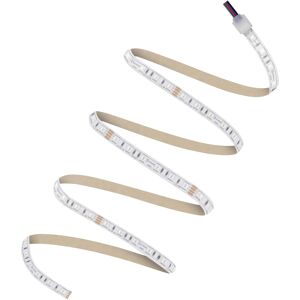 Rubans LED RGB protégés IP65 - 500 lm/m pour les applications générales. Caractéristiques produit: Bande de LED flexible et sécable avec des LED RGB en ligne, Plus petite unité de coupe: 100 mm, Durée de vie (L70 / B50): jusqu'à 40000 h à Tc max .: 75°C, Type de protection: IP65, Résistant aux ambiances salines, Hautement résistant aux UV, Gradable par impulsions (modulation de largeur d'impulsions), Avantages produits: Nombreuses possibilités en termes de design grâce aux rubans LED RVB longs et flexibles, Couleur changeante homogène, Installation facile, pas d'outils nécessaires pour la connexion, Montage facile sur de nombreuses surfaces lisses grâce à une bande autocollante, Flexibilité maximale grâce à une large gamme d'accessoires, Connexion simple grâce aux câbles intégrés de chaque côté, Domaines d'application: Pour les applications à l'intérieur et à l'extérieur (IP64), Éclairage d'accentuation des façades, Éclairage d'effets en architecture, Effets dynamiques dans les zones publiques, Éclairage de voûtes, Éclairage de meubles, Hôtels et bureaux, Intérieurs résidentiels, Données techniques: Longueur: 5000 mm, Largeur: 12,50 mm, Hauteur: 4,20 mm, Poids net: 250 g, Tension nominale: 24 V, Courant nominal: 2800 mA, Puissance de mesure: 67 W, Consommation d'énergie: 67 kWh/1000, Couleur de la lumière: RVB, Angle de rayonnement: 120 °, Faisceau lumineux: 2150 lm, Durée de vie: 40000 h, Avec variateur de lumière: Oui, EAN: 4058075404472