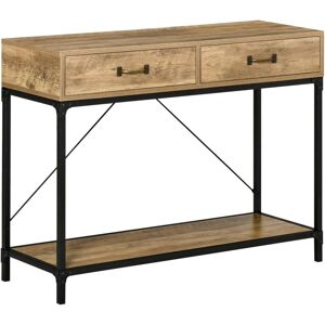 Homcom Console style industriel 2 tiroirs étagère métal noir aspect bois Marron 100x77x35cm