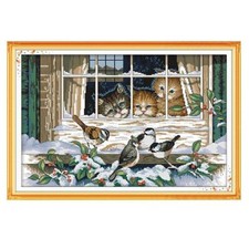 NONE Kit de broderie point de croix série paysage quatre saisons, tissu imprimé toile blanche, kits de couture faits à la main bricolage, Aida, 14ct, 16ct, 11ct