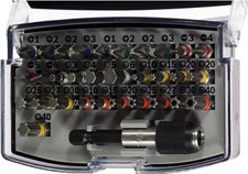 Coffret d’embouts de vissage extra-durs, 32 pieces – Pour perceuses/visseuses rotatives Le coffret d’embouts de vissage 32 pieces convient a une utilisation universelle Le set contient divers embouts de vissage Utilisation universelle L’embout de vissage Extra Hard convient a une utilisation universelle Le coffret d’embouts de vissage 32 pieces fournit une boîte de rangement pratique et solide permettant une visualisation immédiate du contenu, un transport facile et un rangement en toute sécurité. L’embout est doté d’une queue hexagonale 1/4" pour un vissage universel avec les visseuses et perceuses-visseuses.>