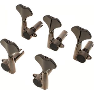 Gotoh GB707 3L/2R CB Bass Tuners, Set de 5 mécaniques, Pour basse électrique, 3 gauches/2 droites, Mécaniques fermées, Démultiplication: 1:20, Longueur des axes (jusqu'au trou de corde): 24 mm, Pour perce d'un diamètre de 14 mm, Vis de fixation (90°) et écrous incl., Finition: Cosmo Black, Fabriqué aux Japon
