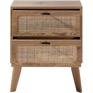 Calicosy Chevet 2 Tiroirs Décor Bois avec Façades Rotin - L45 cm Beige 45x56x29cm