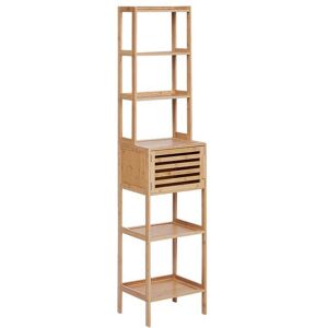 Cette élégante étagère de salle de bains, fabriquée en bambou écologique, offre une solution de rangement à long terme. Doté de deux étagères ouvertes et d'une armoire fermée, il offre suffisamment d'espace pour organiser tous les éléments essentiels de la salle de bains. La finition naturelle du bambou ajoute une touche organique et chaleureuse à tout décor, ce qui en fait non seulement un élément pratique mais aussi un ajout visuellement attrayant à votre espace.