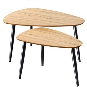Ces 2 tables basses gigognes sont idéales pour les petits espaces car elles n'encombrent pas l'espace et vous permettront de gagner de la place. Vous pourrez moduler l'utilisation des 2 tables en fonction de vos besoins et de vos envies. Ces tables basses sont très pratiques au quotidien pour manger ou pour travailler. Leur design industriel s'adaptera à tous les styles d'intérieur. Caractéristiques produit : Lot de 2 tables basses gigognes arrondies, pieds métal noir ou doré.Fabriqué en panneaux de particules mélaminés, double face, tubes en métal. Panneaux labellisés FSC, issus de forêts gérées durablementDimensions produit : Grande Table : Longueur 70 cm x Largeur 70 cm x Hauteur 45,5 cmPetite Table : Longueur 45 cm x Largeur 45 cm x Hauteur 40,5 cmPoids net : 9,05 kg. Dimensions colis : Colis n°1 : Longueur 78 cm x Hauteur 9 cm x Profondeur 75 cm - Poids brut : 10,10 kg.