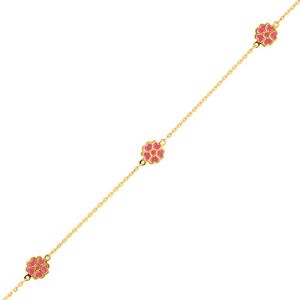 Le printemps est là! Ces jolies fleurs roses sur ce bracelet bébé en attestent… Reliées entre elles par un fin bracelet, elles forment une ronde autour du poignet de l’enfant à qui sera offert ce ravissant bijou.Ce bracelet mesure 16cm et possède un anneau intermédiaire à 14cm. Il est présenté dans