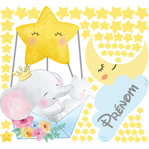 Des stickers Prénoms Personnalisé pour votre déco ! Ajoutez votre prénom personnalisé avec ce sticker mural ! Tous les caractères sont importants : majuscules, minuscules, accents, etc. Avec les stickers muraux prénoms personnalisé et ce Sticker personnalisé prénom éléphant dans les nuages, vous po