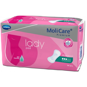 Hartmann Molicare Premium Lady Pads 3.5 gouttes Protection anatomique fine et discrète pour fuites urinaires modérées. • Neutralise les mauvaises odeurs. • Dotée d'une absorption rapide et efficace. • Grande capacité de rétention. • Épouse la forme du corps. • Pour hommes et femmes. • Protection aérée et voile textile doux pour la peau. • Avec élastiques garantissant un ajustement confortable à l'entrejambe. Longueur Absorption Conditionnement Molicare Premium Lady Pads 0.5 GOUTTE 18 x 8 cm 70 ml 28 pièces Molicare Premium Lady Pads 1 GOUTTE 22 x 10 cm 181 ml 14 pièces Molicare Premium Lady Pads 1.5 GOUTTE 27 x 10 cm 252 ml 14 pièces Molicare Premium Lady Pads 2 GOUTTES 26,5 x 11 cm 331 ml 14 pièces Molicare Premium Lady Pads 3 GOUTTES 34 x 13 cm 504 ml 14 pièces Molicare Premium Lady Pads 3.5 GOUTTES 34 x 13 cm 632 ml 14 pièces Molicare Premium Lady Pads 4 GOUTTES 43 x 16,2 cm 782 ml 14 pièces Molicare Premium Lady Pads 4.5 GOUTTES 43 x 16,2 cm 914 ml 14 pièces Molicare Premium Lady Pads 5 GOUTTES 43 x 16,2 cm 1029 ml 14 pièces